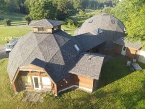Bronze Award Winner: Priddy Roofing and Exteriors — The Double Dome (Mercer, Pennsylvania) Project Overview: Homeowners seeking to replace the roof on a highly unconventional residence turned to Priddy Roofing and Exteriors for a project defined by dual interconnected geodesic domes. With 238 unique facets, each with its own pitch, angle and drainage direction, the roof presented a highly complex asphalt roofing installation. Owens Corning TruDefinition Duration Shingles in Williamsburg Gray provided the flexibility to follow the compound curves while maintaining strong fastening and sealant adhesion. Full-coverage ice and water shield created a redundant water-resistant barrier across the constantly changing planes. The team installed the roof one facet at a time, with each course measured, cut, aligned, hand-sealed and hand-nailed. Custom flashings accommodated triangular and irregularly shaped windows, while a perimeter intake and site-built circular ridge vent restored ventilation.