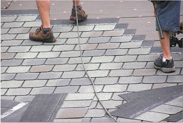 “We drop steel balls from 20 feet above the shingle to try and crack it. In the most severe test, we drop a 2-inch ball from 20 feet above on the shingle. Then we flip the shingle over. If it is not cracked on the underside, it passes the test,” says Todd.
