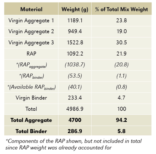 Three steps to properly calculate batch weights for asphalt specimens using RAP