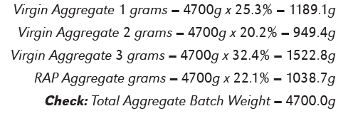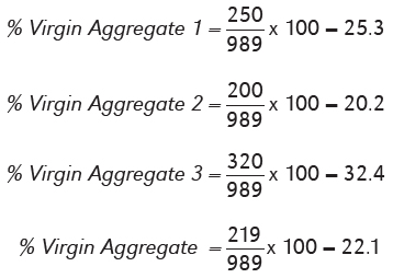 1000 lbs. x 25% = 250 lbs. Virgin Aggregate 1