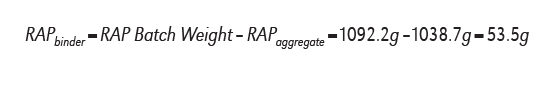 Since we now know the weight of the RAP and the weight of the RAPaggregate, it is easy to calculate the weight of the RAPbinder: