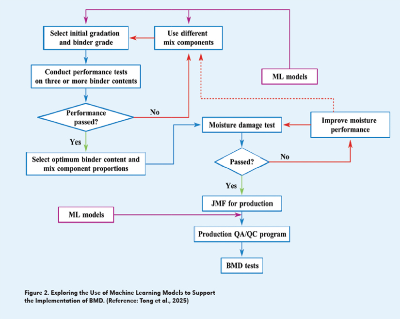 The ultimate vision is to weave machine learning into BMD workflows so that AI becomes a trusted advisor (refer to Figure 2). In the design phase, it could suggest adjustments before a single specimen is made. During production, it could flag when a mix is edging toward performance limits, prompting quick corrections. Over time, as more data is collected, models could be retrained to become even more accurate and predictive.